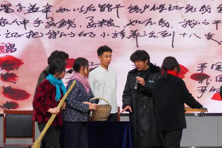 晚会以“韶华赴新程、家国赤子心、逐梦向世界”三大篇章为主线,串联起青春理想、家国情怀与世界视野,呈现了一场兼具思想深度与艺术温度的视听盛宴。第一篇章“韶华赴新程”以青春活力为底色,青年疗养院乐队的合奏奏响悠扬序曲,明快的歌舞、悦耳的乐器演奏轮番登场,既展现出青年学子的蓬勃朝气,又通过温馨的互动环节拉近了师生距离,让整场晚会的氛围在一开始便热烈升温。第二篇章“家国赤子心”满含深情与担当,红剧再现奋斗初心,歌曲唱响对祖国的热爱与祝福,铿锵有力的朗诵传递着对榜样精神的敬仰,一幕幕真挚演绎直抵人心,让家国情怀在师生心中深深扎根。第三篇章“逐梦向世界”尽显多元开放的青春风采,动感十足的爵士舞、引发全场共鸣的青春歌曲,以及将中华传统之美与世界文化元素巧妙融合的走秀节目,让舞台绽放出别样光彩,最终晚会在全体演职人员合唱《相亲相爱》的温馨旋律中圆满落幕。