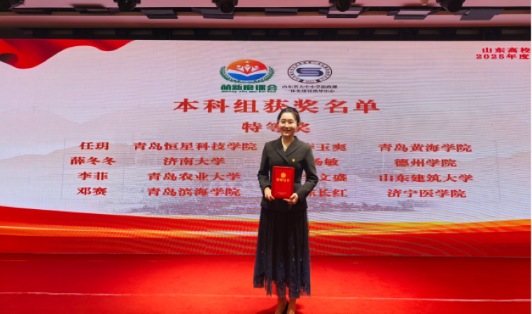 12月5日,山东高校思想政治理论课2025年度“萌新磨课总会”在青岛西海岸新区顺利举行。我校教师李玉爽凭借出色表现,一路披荆斩棘,在150余所高校中脱颖而出,荣获特等奖。