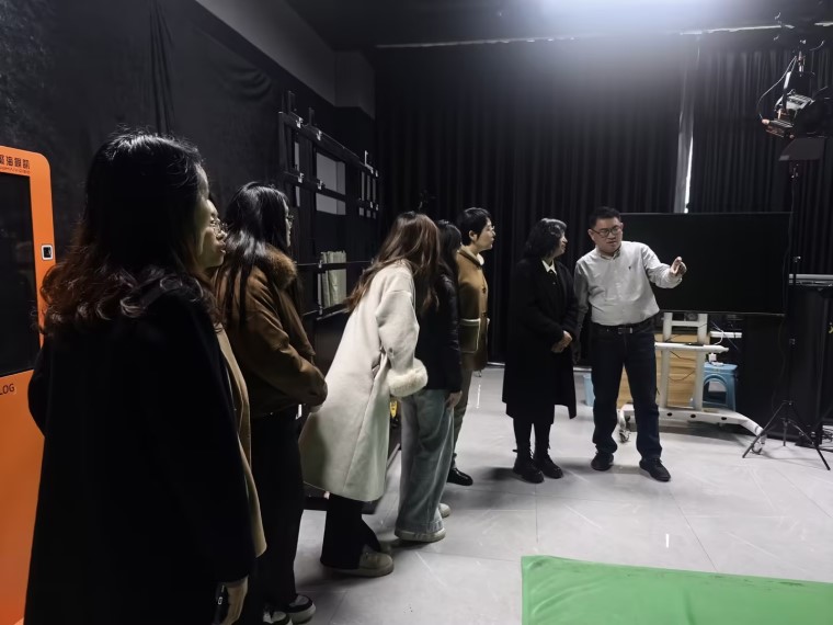 国际商学院教师团队实地参观了基地的5G高清视频演播室、直播电商运营中心、跨境电商直播运营中心、影视后期制作中心及短视频直播培训工作室。现代化的办公环境、专业化的直播设备、让老师和学生们近距离感受到数字经济浪潮下电商行业的蓬勃生机。企业负责人李明详细介绍了公司在短视频、直播电商、跨境电商运营等领域的发展布局与人才需求,表达了与我校深化合作、共育人才的强烈意愿。