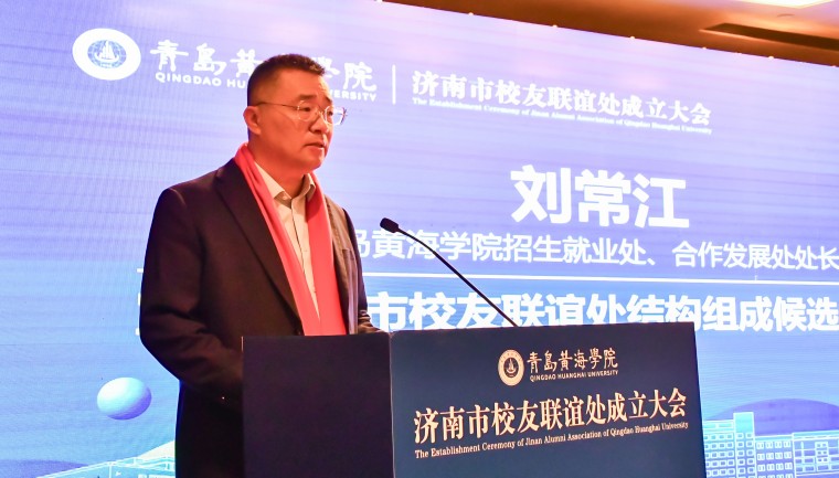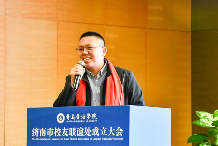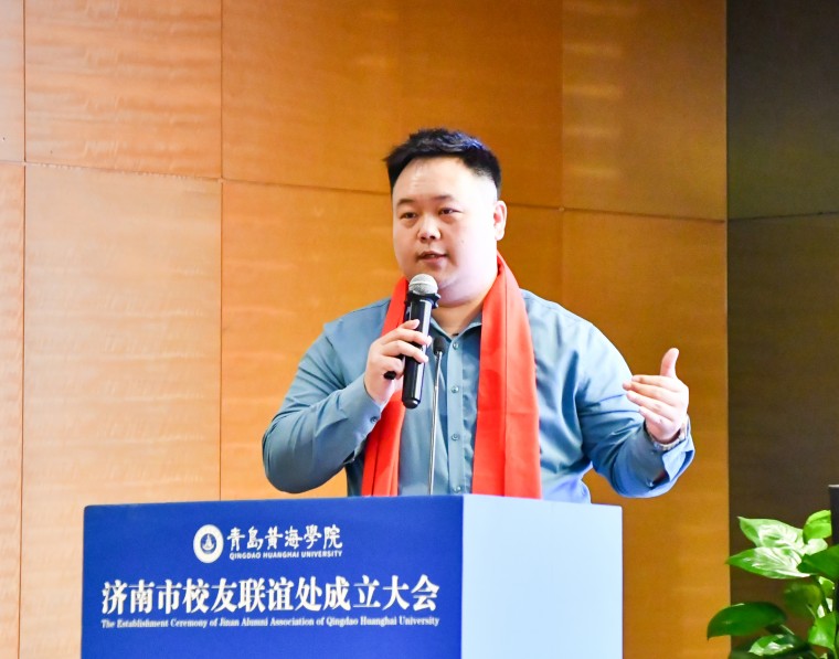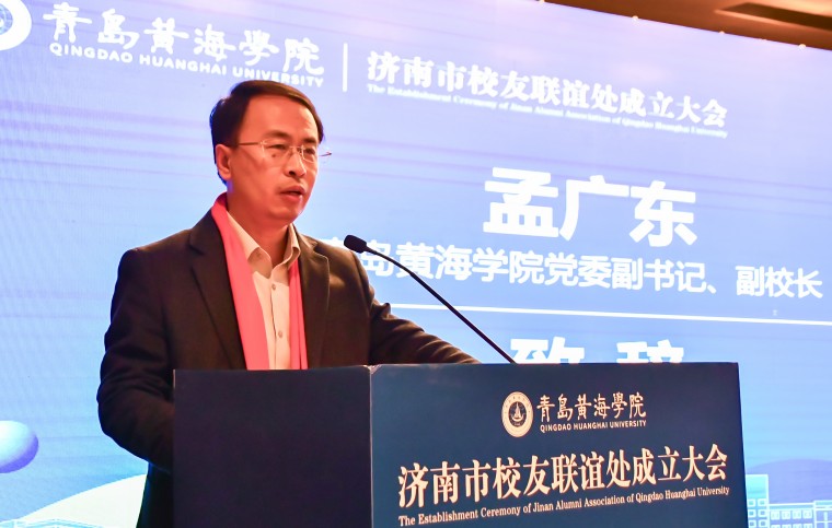 孟广东在致辞中代表学校向济南校友联谊处的成立表示热烈祝贺。他回顾了济南校友长期以来在搭建实习就业平台、回校分享行业经验等方面的无私奉献,并致以诚挚感谢。他对联谊处未来发展寄予三点期望:一是做校友的“暖心家园”。让更多校友找到组织、融入集体,感受家的温暖;二是做连接母校的“坚固桥梁”。将深厚渊源转化为纽带,促进母校与校友同呼吸、共命运;三是做展示形象的“亮丽窗口”。立足泉城、服务社会,彰显黄海人的责任与担当。今年正值母校建校30周年,他向大家发出诚挚邀约,期盼广大济南校友重返母校,畅叙同窗情谊,共绘发展蓝图。