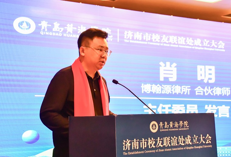 新当选的济南校友联谊处主任委员、山东博翰源律师事务所合伙人肖明在发言中深情回顾了在母校的求学时光。作为深耕法律服务行业多年的专业人士,他结合博翰源律师事务所在民商事、公司证券及金融保险等领域的综合发展历程,分享了“专业护航、实干立业”的感悟。他表示,作为济南校友联谊处首任会长深感责任重大,未来将团结带领校友团队重点做好两方面工作:一是织密校友联络网,把济南分会真正打造成有温度、有归属感的校友之家;二是搭建互助发展平台,充分发挥自身的法律专业优势,为校友提供法律咨询、风险防范等公益服务,为大家的事业保驾护航,同时整合各行业校友资源,反哺母校建设。