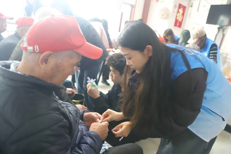 除手工与歌唱外,志愿者们还贴心陪伴老人围坐聊天、闲话家常,认真倾听他们讲述人生经历与岁月故事,用真诚倾听回应老人的情感需求。