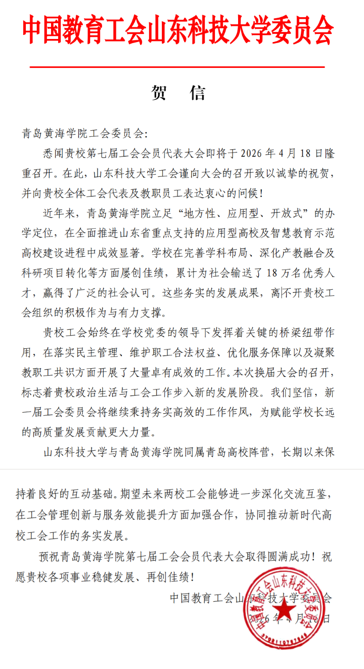 山东科技大学贺信