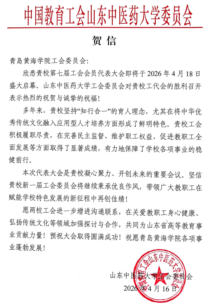 山东中医药大学贺信