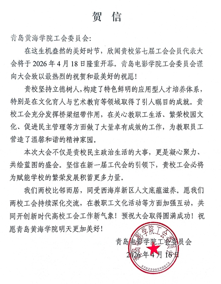 青岛电影学院贺信