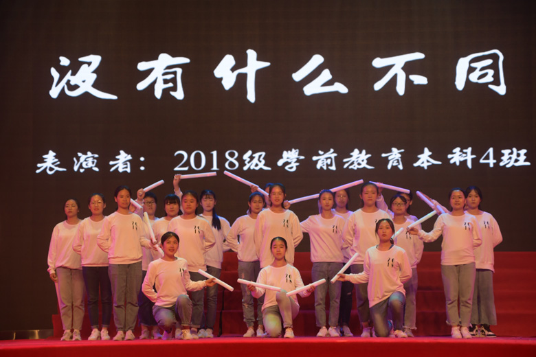 接下来,融汇了学前教育各专业的精彩节目接连上演。《青春的梦想》抒发了全体幼儿教师的爱与责任;舞蹈《表白2019》满怀浓浓的爱与情谊;舞蹈《中华军魂》气势如虹、精彩热烈;舞蹈《国韵汉风》步伐轻盈,宁静致远……歌曲《昔日故事》、乐器合奏《秋的童年》、音诗画《没有什么不同》、舞蹈《龙》、歌曲《海阔天空》《十年》、钢琴联奏《欢乐进行曲》、歌伴舞《共和国之恋》,学前教育学院的同学们拿出看家本领,为大家带来了一场精彩纷呈的视听盛宴!