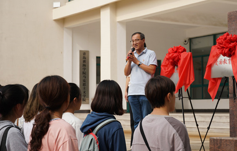 9月25日下午,我校与青岛职业技术学院艺术学院在雷锋纪念馆举行“爱国主义教育基地”“红色教育基地”共建揭牌仪式。黄海学院校务委员会副主任、学校关工委主任宋庆泽,雷锋班第21任班长、黄海学院人武部副部长李桂臣,青岛职业技术学院艺术学院党总支书记李志强,2019级辅导员李晓伟,2019级学生积极分子参加了揭碑仪式。