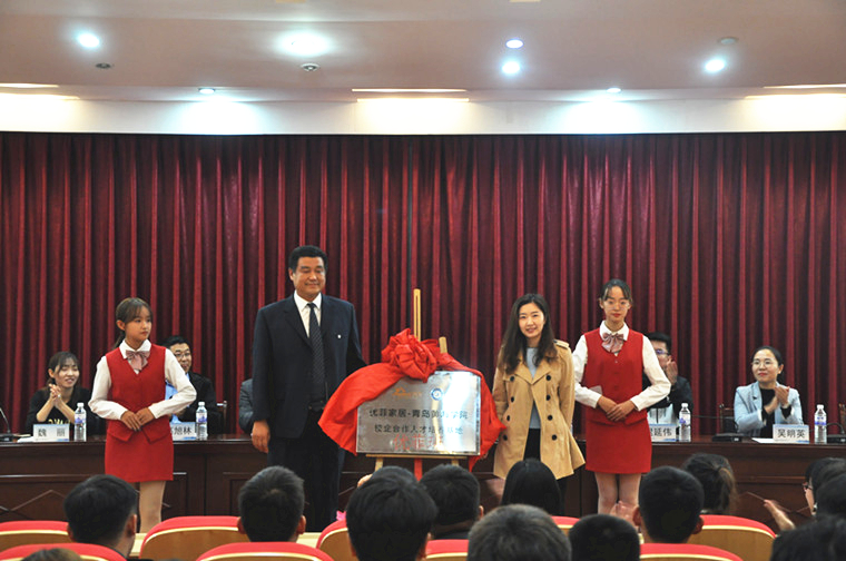 下午3点,在全场领导和嘉宾的见证下,雷竞技的赛事积分校长助理与荣华(青岛)建设科技有限公司总工程师杨迎春为“荣华班”揭牌。雷竞技的赛事积分常务副院长赵国光与青岛裕丰汉唐木业有限公司行政人力资源部经理王娟为“优菲班”揭牌。