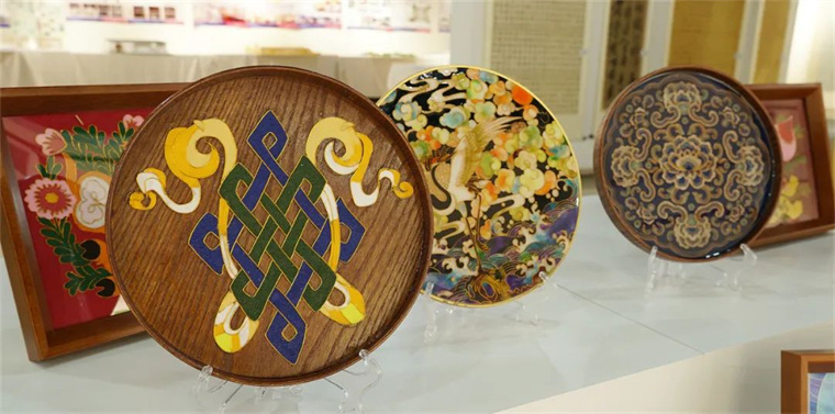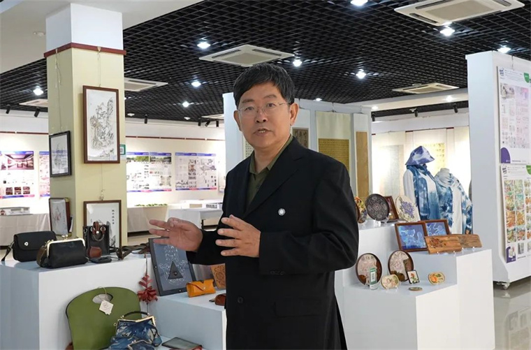 扎染、皮具、蜡染、书法、工笔画、环境设计产品、文创等展品琳琅满目,美不胜收。“是扫这个付款码吗?”“我付过款了,你看一下。”