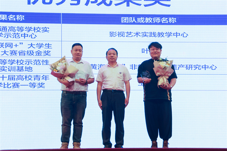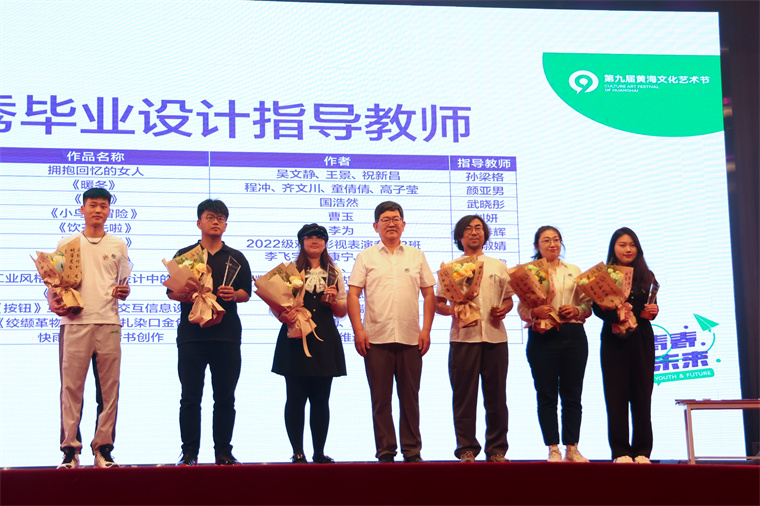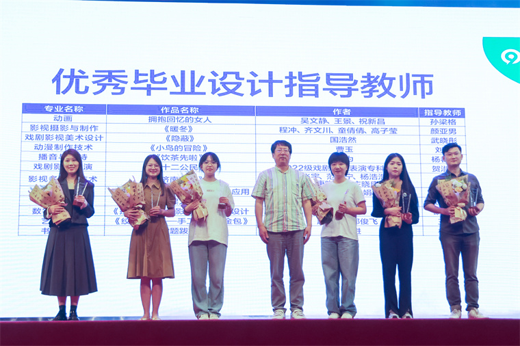 为毕业展优秀指导教师颁发毕业设计优秀指导教师奖和教学成果奖。这些优秀的教师们用自己的智慧和汗水培育出了一批批优秀的艺术人才,为学生的成长和发展付出了辛勤的努力和汗水。