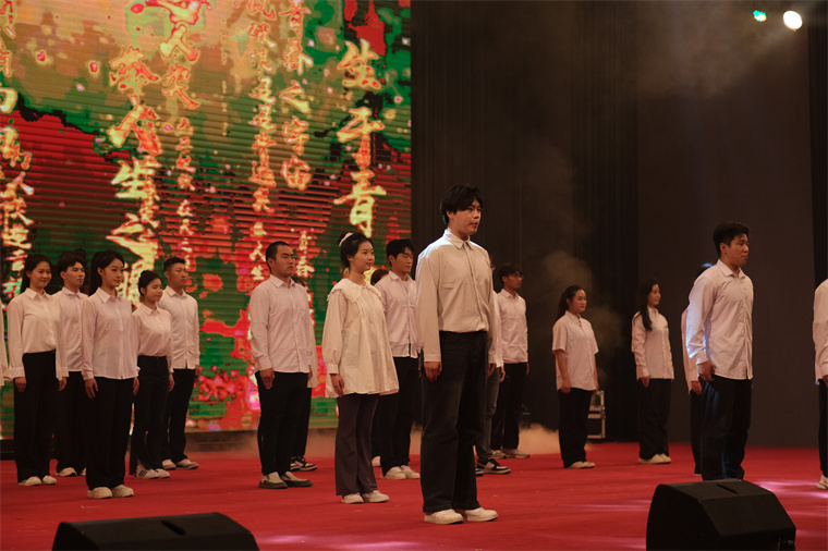 别开生面的音诗画表演《青春》。在浩渺的历史长河中,有一位青年,他怀揣着炽热的信仰,用笔墨点燃了革命的火焰。他是李大钊,一位伟大的革命先驱,他的文字如同璀璨的星辰,照亮了中国前进的道路。今天,让我们以歌舞为媒,以美育为翼,共同追寻那位先驱的足迹,感受红色传承的力量。演员们通过音乐、诗歌和绘画的结合展现了青春的多彩和美好,用自己的才华和创意为观众呈现了一幅幅生动的青春画卷。