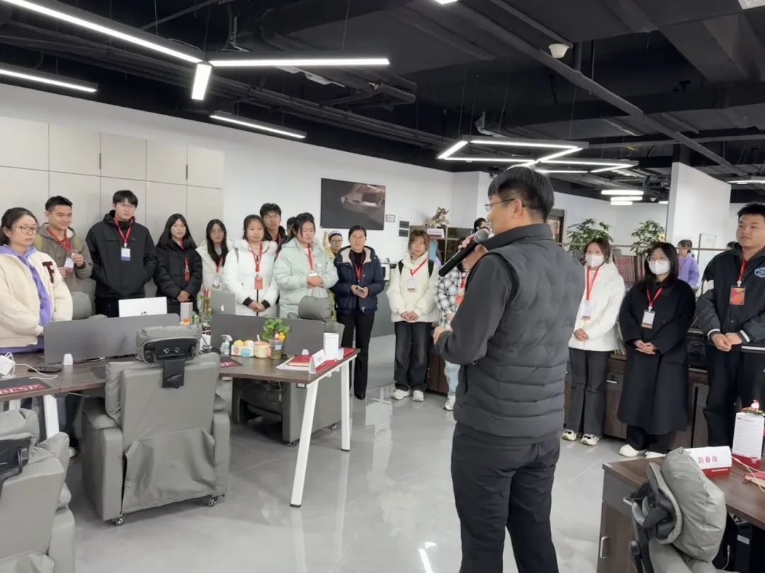 韩青峰总经理讲述了大学毕业后二十年的创业故事,特别提到:"新时代年轻人既要学好专业技能,更要心里装着社会和国家" ,同学们深受触动。在研发实验室看到曾经学习、使用过的类似传感器设备时,李松涛同学与韩总进行了简短的问答互动,杨成贺同学也与韩总交流了当前热点deep seek、manus,韩总简洁的分析了人工智能与大数据的关系,通俗易懂,言简意赅。