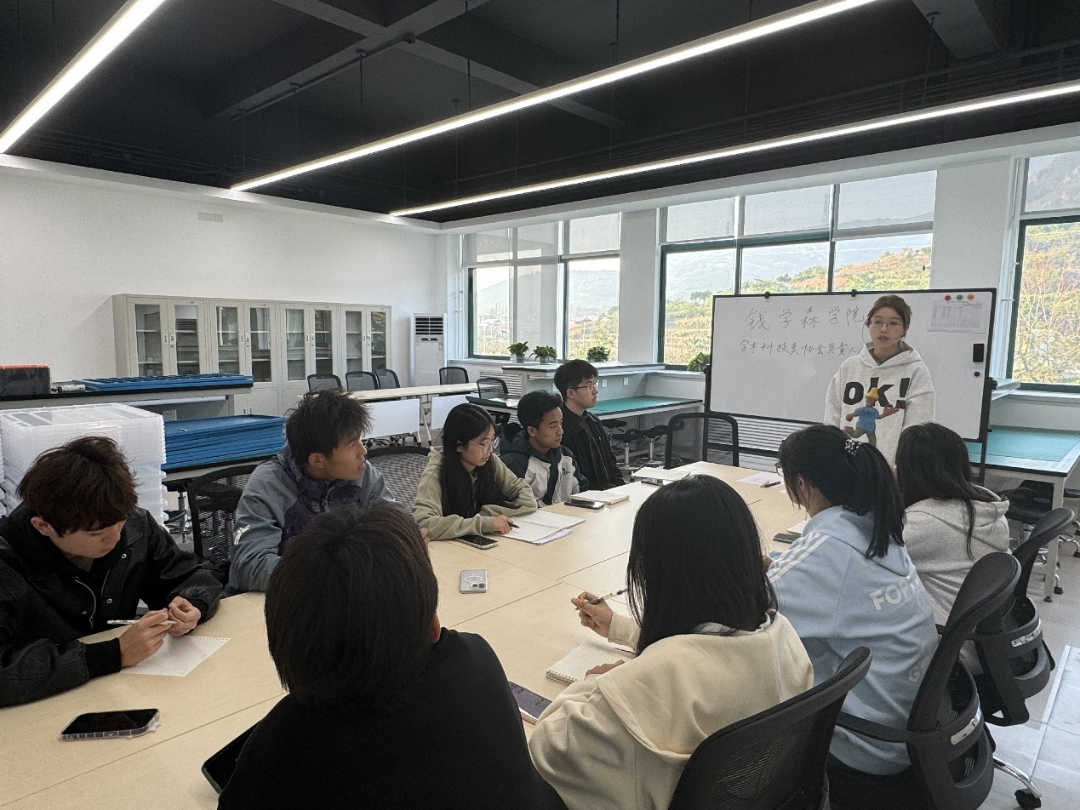 钱学森学院领导高度重视本次“挑战杯“竞赛,以周曼丽、崔晓、王虔等为代表的学院专任教师牵头组建竞赛指导团队,利用课余时间为参赛学生提供系统培训。培训内容涵盖项目选题、调研方法、资料收集、团队协作等关键环节,通过案例分析、现场答疑等方式帮助学生梳理备赛逻辑,优化研究方向。此外,同学们自发组建研讨小组,结合课堂所学与培训要点,围绕项目可行性、技术难点等展开讨论,逐步完善方案框架。师生协同、学用结合的模式,为后续备赛提供了扎实的理论基础与实践支持。