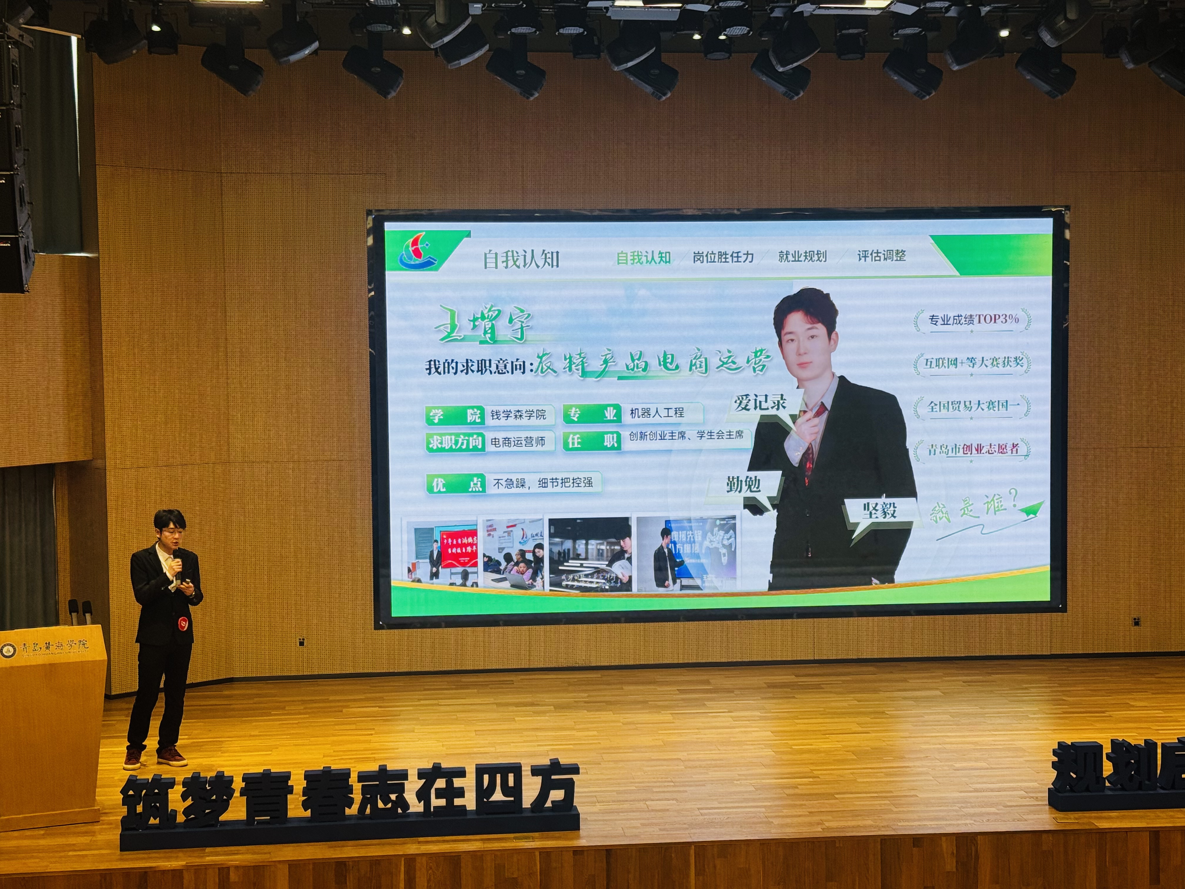 来自钱学森学院2023级机器人工程专业的王增宇同学,在全校 20余名参赛选手的激烈角逐中脱颖而出,一举拿下就业赛道一等奖,不仅实现了个人从去年成长赛道二等奖到今年就业赛道一等奖的跨越式进阶,更创下学院在该赛事中的历史突破,为全院学子的创新创业与职业规划树立了标杆榜样。