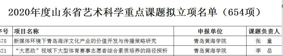 2020年度山东省艺术科学重点课题拟立项项目,我院共有2项课题获批拟立项