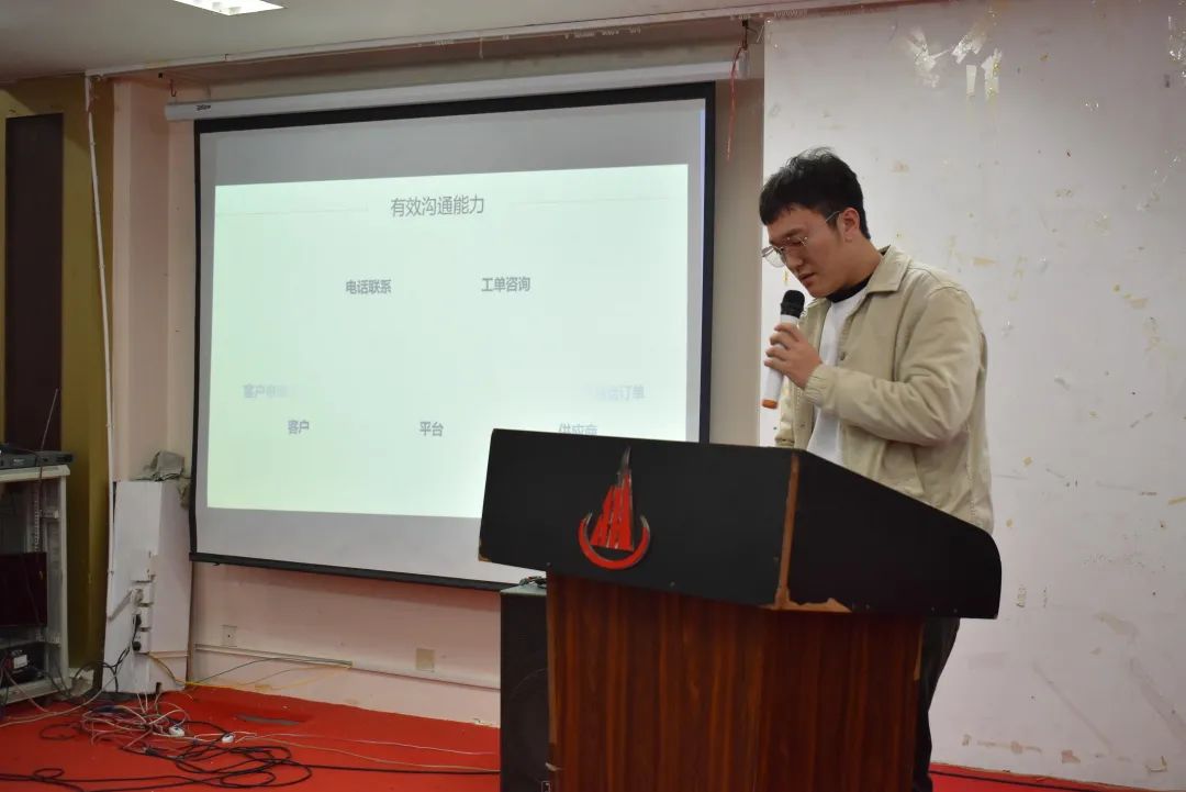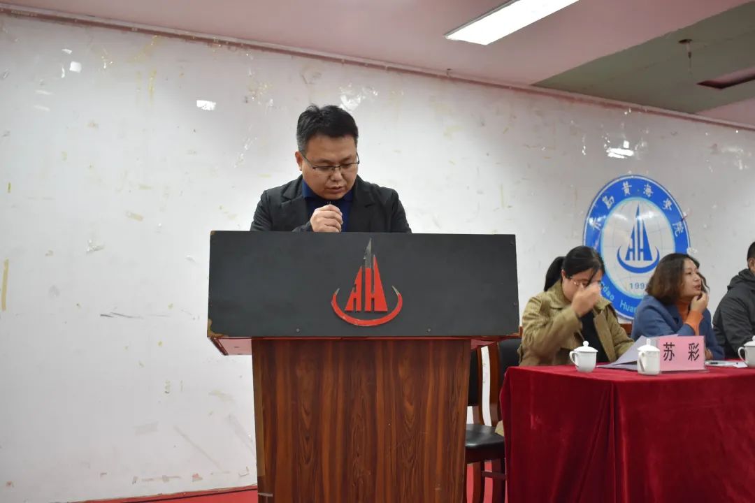 会议第二项,青岛黄海学院合作发展处联络人庄伟讲到专业实习是高校人才培养的重要环节,是教学计划中一个综合性的实践,是学生对所学知识和技能进行实践、总结的重要过程。希望同学们通过不断的锻炼,成为一个合格、对社会有用的人才。