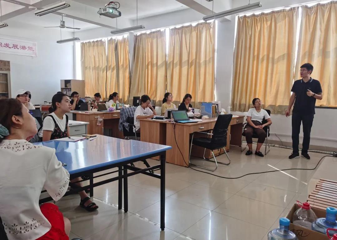 张子元老师与新教师们就如何上好第一课以及课堂授课小技巧进行了交流。其间,张老师分享了第一节课“破冰”的重要性。她介绍了一种新颖的自我介绍的策略,用生活化、游戏化的方式首先引导学生了解老师,再引导学生介绍自己,了解同伴,真正体现了“将教学融于生活”、“在教学中创新”的精神。