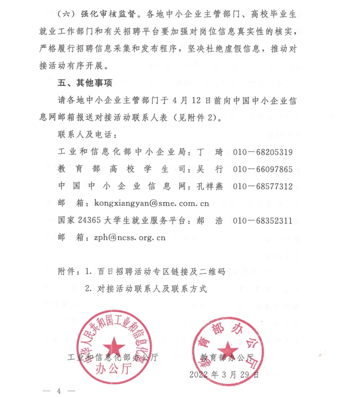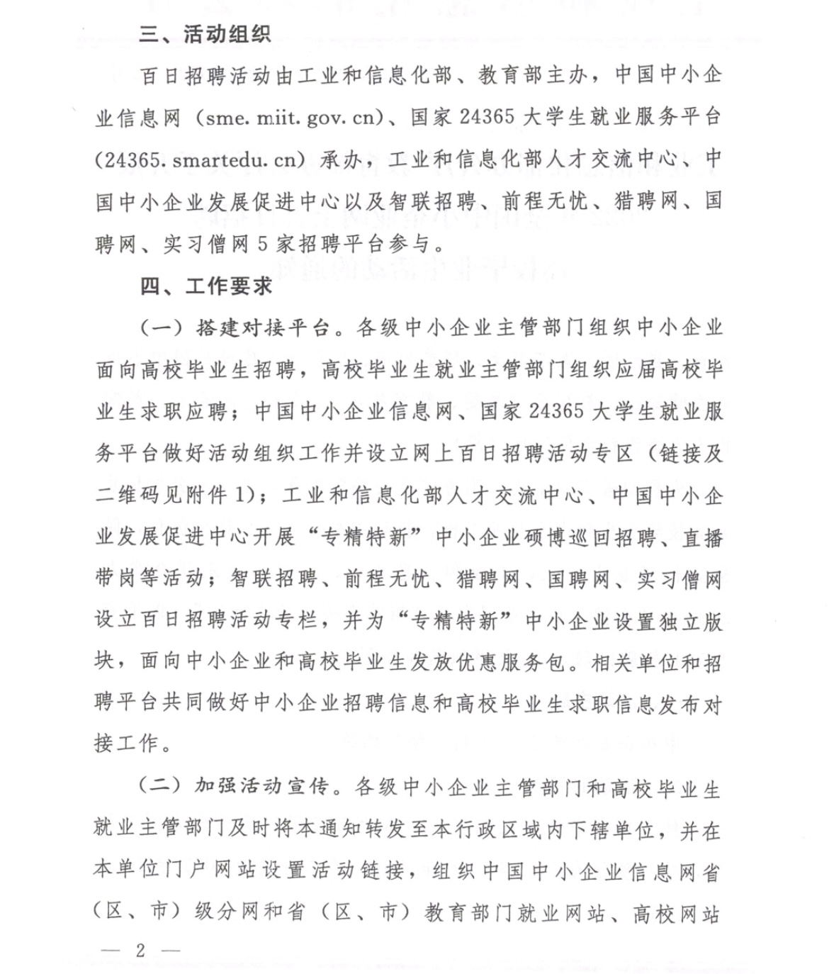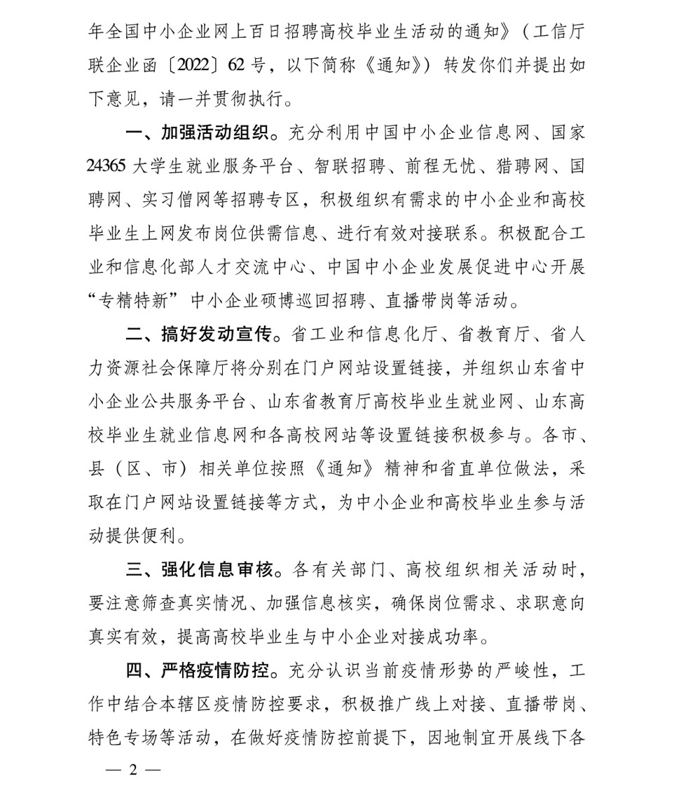 《关于开展2022年全国中小企业网上百日招聘高校毕业生活动的通知》