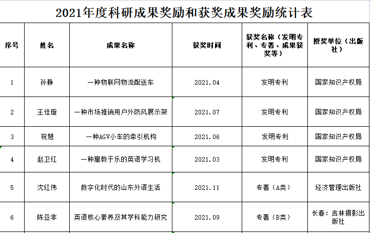 2021年度科研成果奖励和获奖成果奖励,我院共获得17项科研成果奖励,统计数据如下: