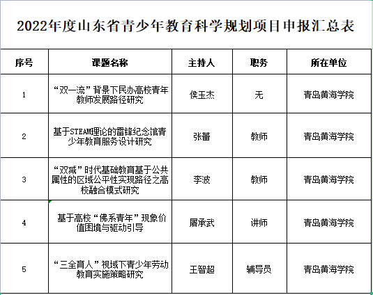 2022年度山东省青少年8教育科学规划项目的通知”,我院共有5项课题获批上级立项,它们分别是: