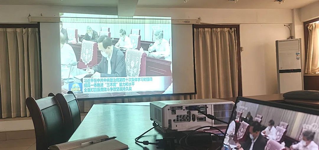 2022年6月22日上午10时,国际商学院与经济管理学院党总支在知新楼二楼会议室,集中观看学习中共中央政治局第四十次学习关于提高一体推进“三不腐”能力和水平的视频活动。活动由党总支书记孙在福同志主持,党总支委员和各支部委员参加。