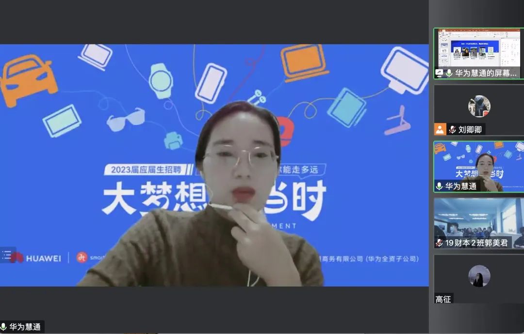 为了提高2023届财务管理专业、互联网金融专业学生对财会金融专业毕业就业的了解,增加学生就业的信心和紧迫感,让即将毕业的学子们对财会专业的未来有更明确的目标,知道该如何行动,财会金融系于2022年10月19日上午,邀请华为集团、青岛银行、安踏体育、鲁南制药等四家企业给毕业班的同学们做了一场意义非凡的就业职场培训讲座。