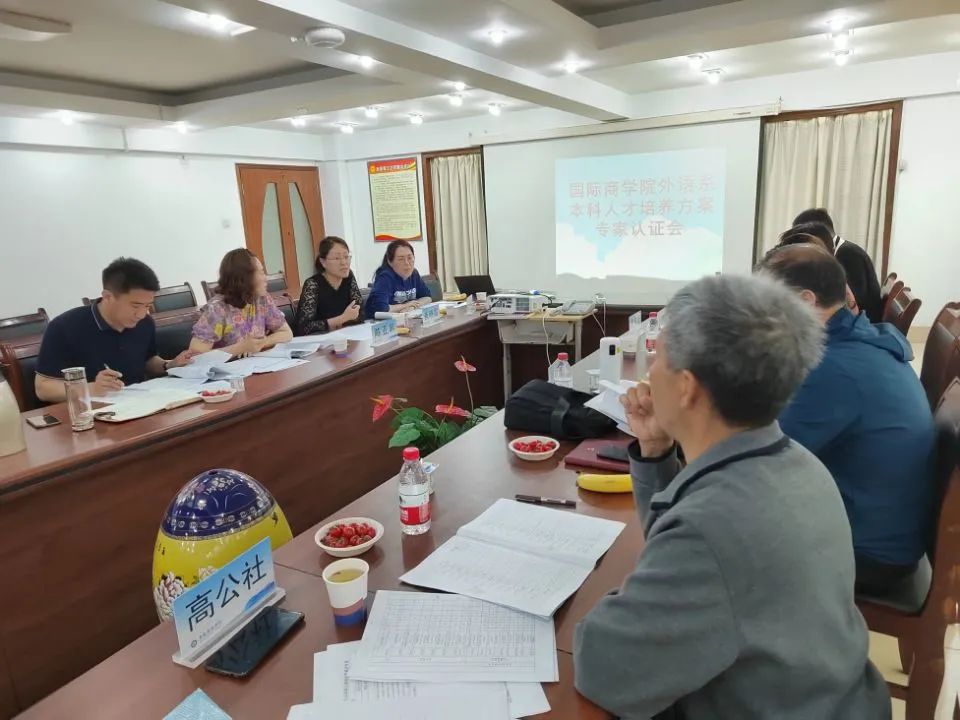 为了进一步提升外语系应用型人才培养质量,按照学校总体规划,国际商学院外语系于2023年5月28日上午8:30-11:00在知新楼二楼会议室再次开展2023版本科人才培养方案校外专家认证会。本次会议由外语系主任陈亚非组织并主持,校外外语专家高公社、武学锋、窦秋萍、鞠波教授和青岛国合有限公司副总经理刘策出席,外语系商务英语专业负责人崔晓雷主任和日语专业负责人孙丽丽主任共同参加现场汇报和答疑。