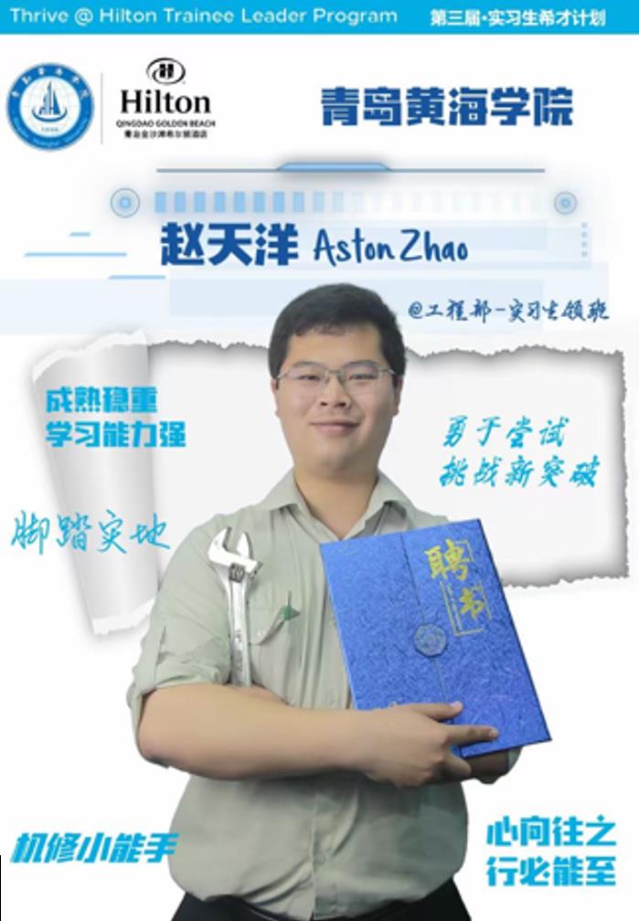 悄然而至的六月初,青岛金沙滩酒店开展了第三届实习生希才计划,来自9个院校的22名实习生用自己的行动诠释了他们炙热而勇敢的青春。经过四轮激烈的角逐,最终有八名同学获得实习领班荣誉称号,我院酒店管理专业的徐腾飞、李倩文、韩潇、赵天洋四名同学脱颖而出晋升实习生领班,并包揽了前三名。