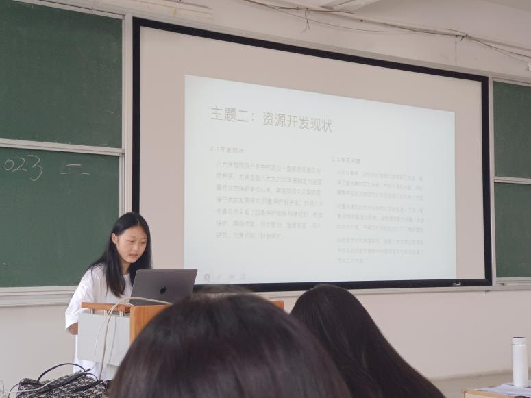 在周五的小组汇报展示中,学生们展示了他们的调研成果,包括景区现状、问题和改进建议等内容。通过精心制作的PPT和富有激情的小组配合汇报,他们向大家展示了所选景区旅游资源的魅力,其他学生和教师提供反馈和讨论。最后,教师对整个实训过程进行总结和点评,学生分享实训的收获和心得体会。