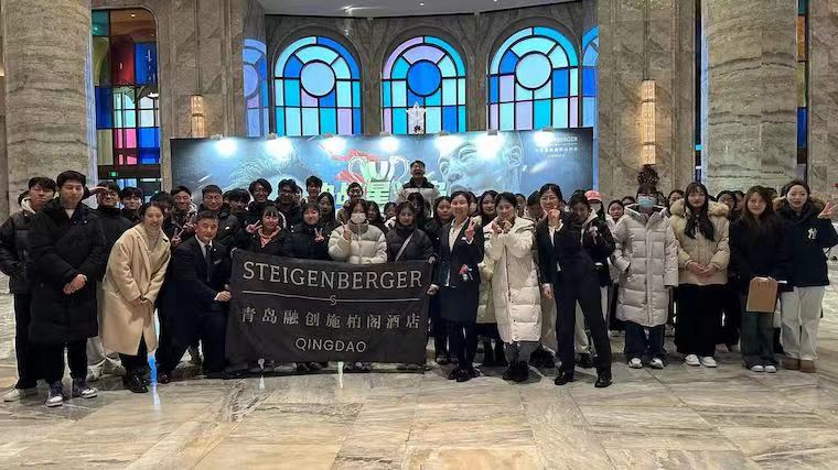 为进一步落实创新课堂改革,培养学生实际操作能力,在理论和实践的交替循环中实现知行合一。2023年12月25日,航旅服务系酒店管理专业、2021级酒店管理本科1、2班69位同学赴青岛融创施柏阁酒店开展《酒店服务技能实训》课程客房服务技能实训。