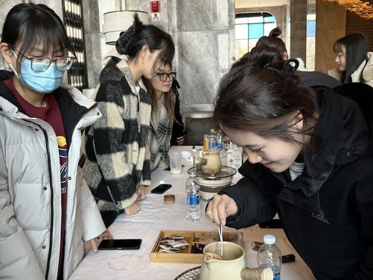 西餐厅副经理李昆亲自主持了奶茶培训环节。他分享了奶茶的种类、选材原则以及奶茶制作的基本步骤。通过实际演示和实操练习,学生们掌握了奶茶的调配技巧,了解了如何根据顾客口味进行个性化调整,提高了他们对奶茶服务的专业素养。