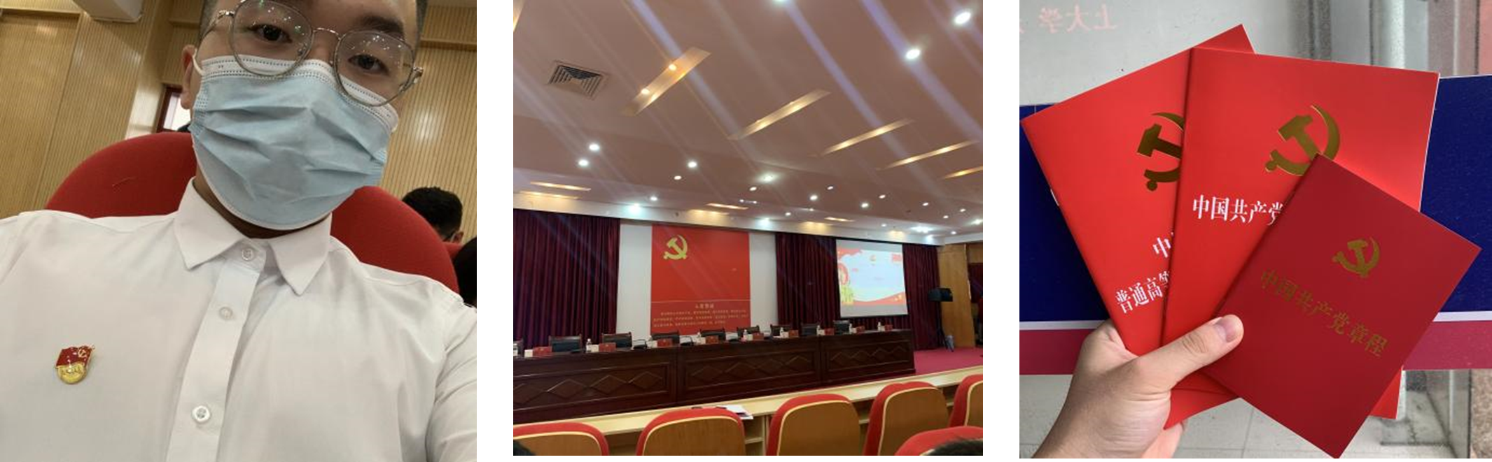 2020年12月他终于实现了大学生党员这个光荣的梦想,他加入了中国共产党,他认真学习党的章程和规章制度,弄懂、弄通习近平新时代中国特色社会主义思想,将其作为学习生活、学习、工作中的行动指南,怀着一颗热心,倾情服务身边群众。