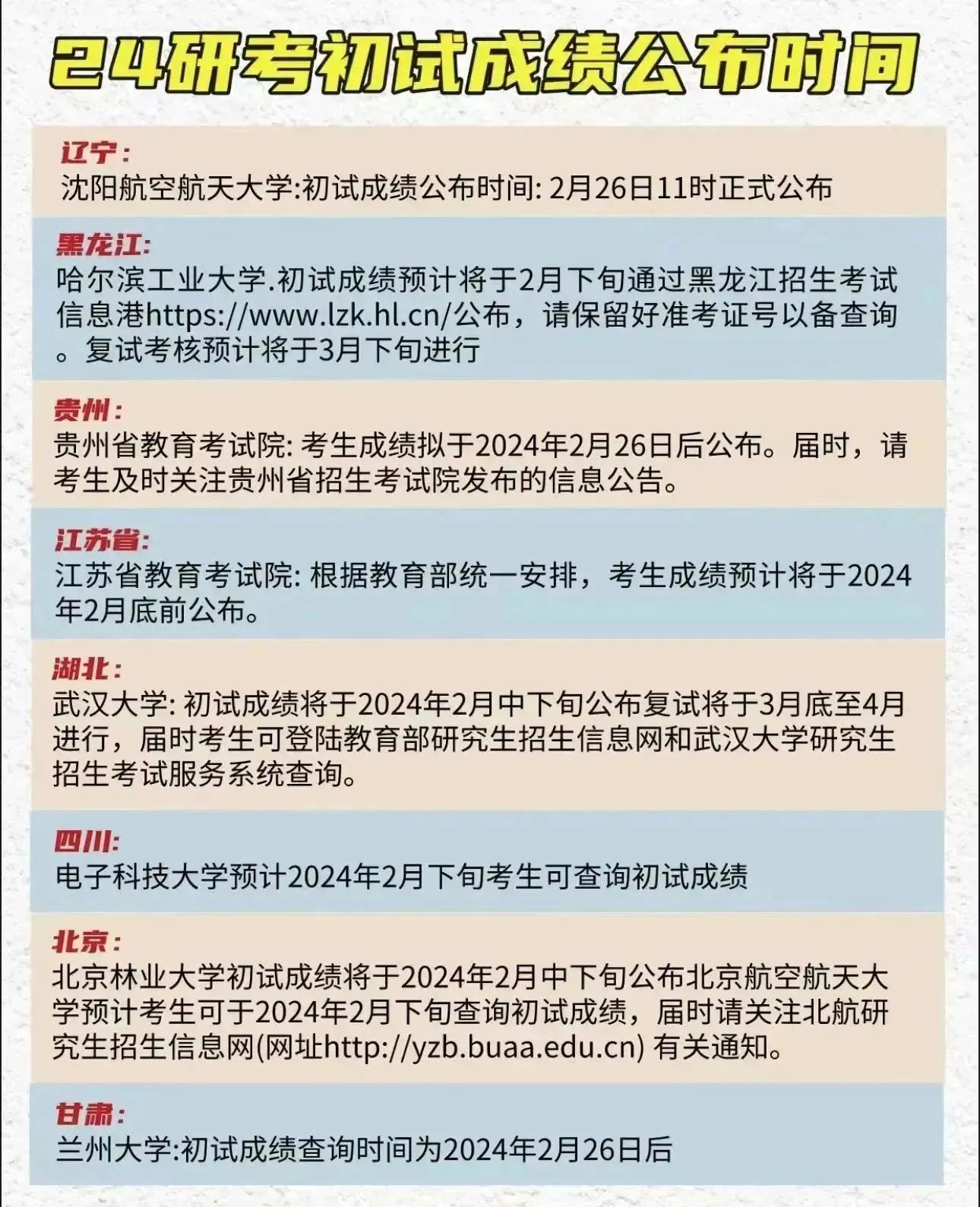 兰州大学:初试成绩查询时间为2024年2月26日后。