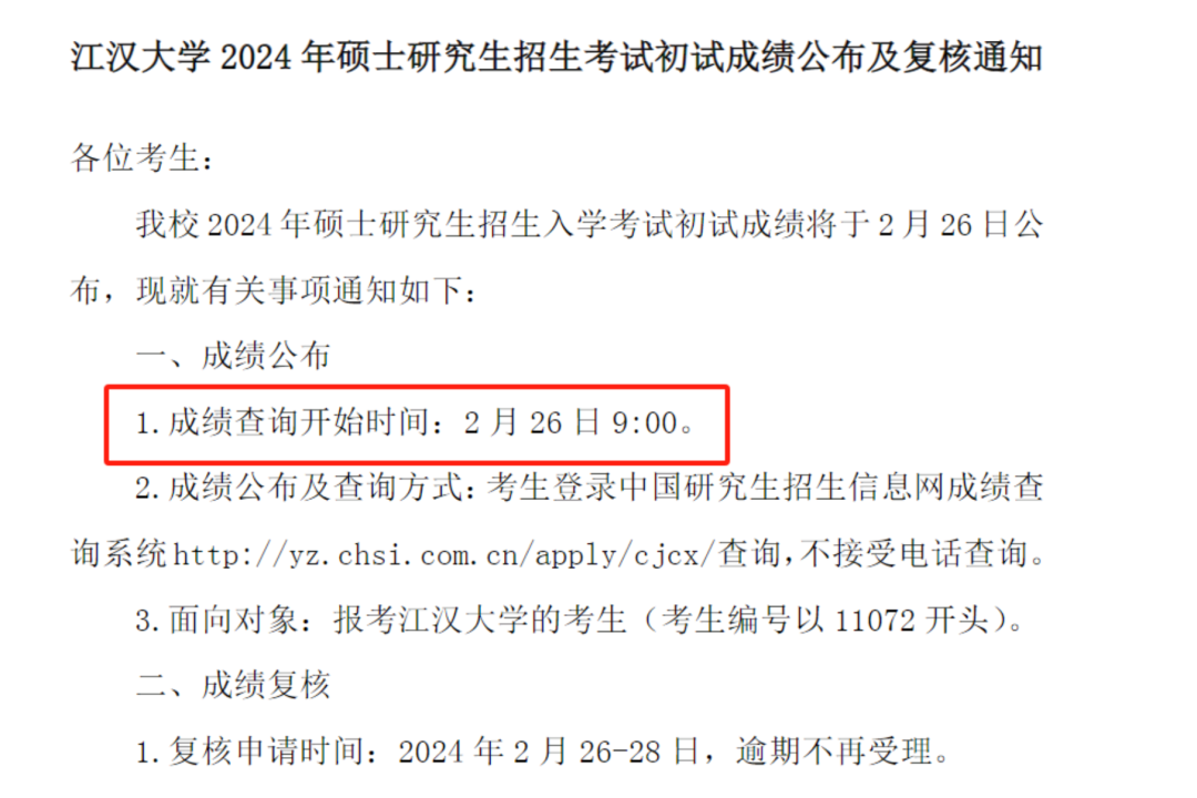 武汉大学:初试成绩将于2024年2月中下旬公布,复试将于3月底至4月进行。