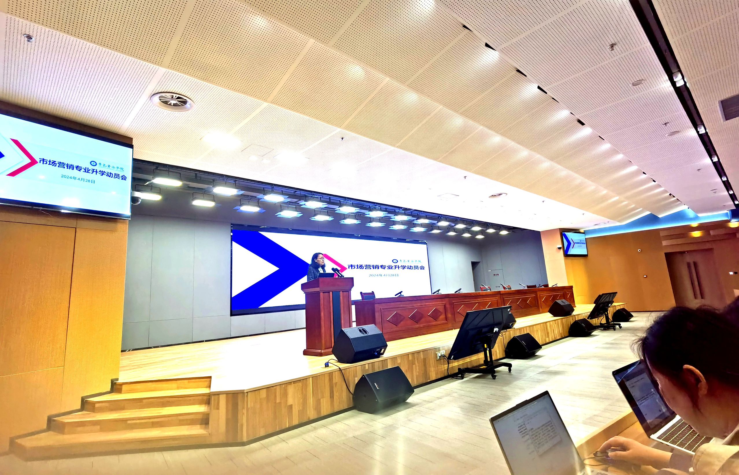 2024年4月28日下午,知信楼B1报告厅内,一场为大学三年级市场营销专业学生量身打造的考研动员会在此隆重举行。本次动员会旨在激发学生们的考研热情,提升备考效率,为即将到来的考研大战做好充分准备。活动由曾海容主任主持。
