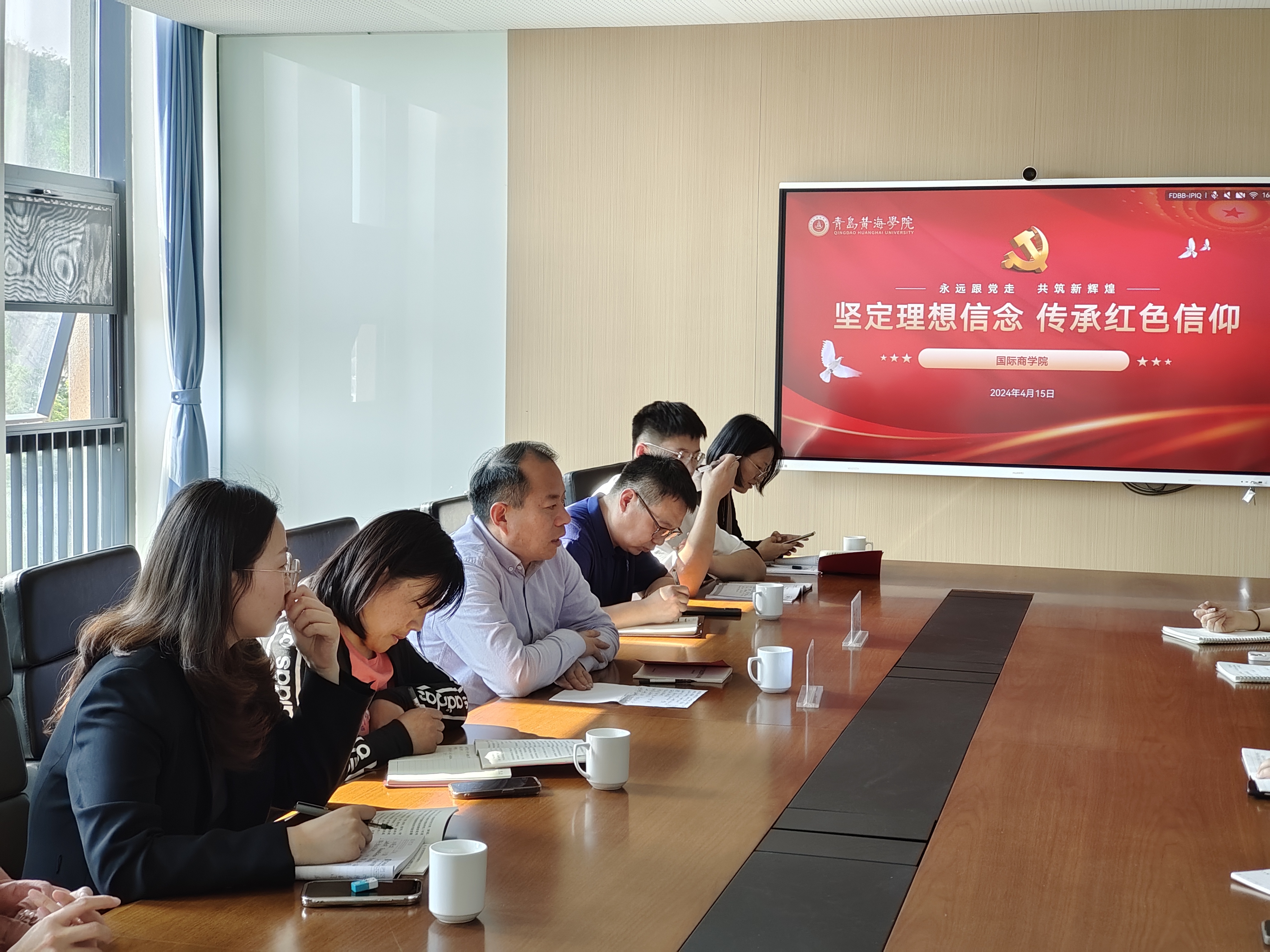 为加强党员的党性教育和纪律教育,促进党员在思想上、行动上始终与党中央保持高度一致,为党的事业不断做出新的更大贡献。国际商学院于近日在知信楼406召开了“永远跟党走,共筑新辉煌,坚定理想信念,传承红色信仰”第二党支部党纪学习活动。第二党支部书记于小燕、第二党支部组织委员屠承武、国际商学院学工主任苑丽丽、国际商学院辅导员毕惜丛老师、经济与管理学院院长助理刘政义、经济与管理学院学工主任武志强出席本次活动。