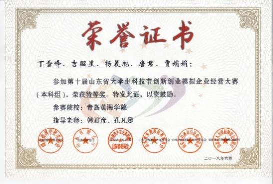 诸佳俊同学作为协会的首届会长,努力践行“知行合一”的理念,做为团队成员之一参加了由教育部学校规划建设发展中心主办的第一届燕园杯 “百校百题”应用型创新课题大赛,其参赛项目“电动汽车分时租赁在职能出行中地位和发展的研究”获得了三等奖的好成绩;孙丽娟同学获省教育厅授予的“山东省大学生优秀科技社团干部”荣誉称号;孙丽娟、刘川扬等同学参与的“ERP沙盘模拟实战对民办本科高校商科学生创新创业能力培养的研究”、“经营管理沙盘教学专创融合应用研究”课题已结题。另有多名同学先后获得国家奖学金、省优秀学生干部、省优秀毕业生等荣誉称号。