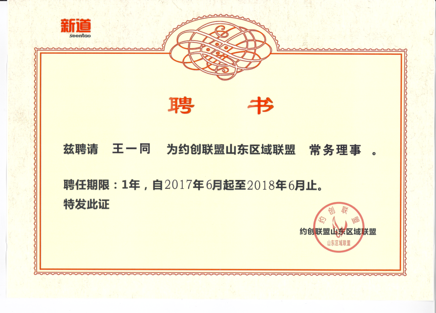 王一同同学作为“全国30佳选手”之一,于2017年12月参加了“全球青年领袖峰会”活动,与全球500强企业的领导者面对面交流,深入学习,既开阔了眼界,又得到了全方位的锻炼和提升;同时该同学作为“约创联盟山东区域联盟活动理事”,受内蒙古农业大学邀请,于2019年4月赴该校就“约创”云平台进行了相关培训,受到该校的好评;