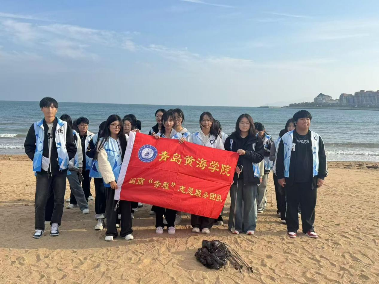 为保护海洋生态环境,提高大学生的环保意识,通过清理海滩垃圾,传播环保理念,唤起同学们对海洋生态保护的重视与参与。2024年10月25日,国际商学院“赤雁”志愿服务团队举办了蓝色大海净滩活动。