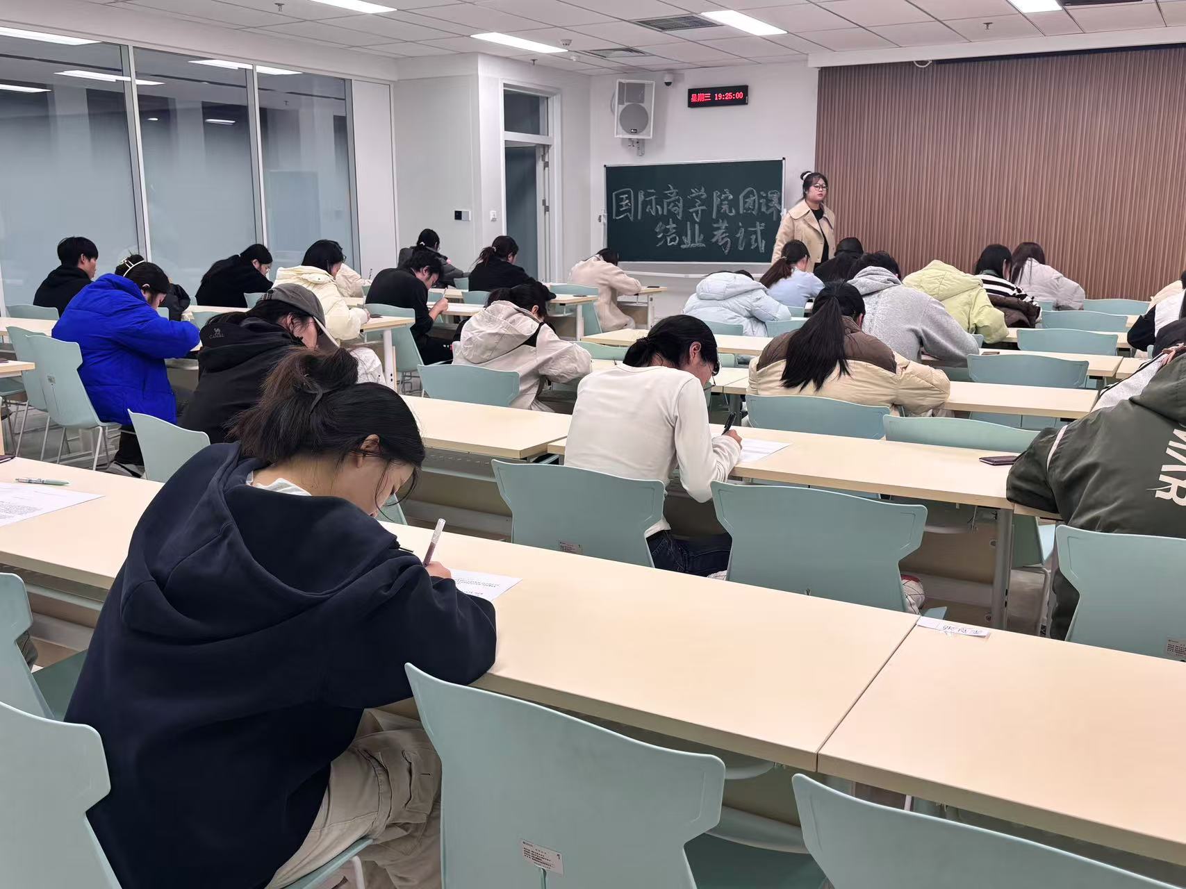 为深入学习贯彻习近平新时代中国特色社会主义思想,检验青年学生对共青团理论知识与实践能力的掌握程度,进一步强化青年学生的理论水平与政治素养。国际商学院于11月20日晚19:00在知信楼334和424教室成功举办了一场别开生面的团课考试,此次考试不仅是一次知识的较量,更是青春风采的一次集中展现。
