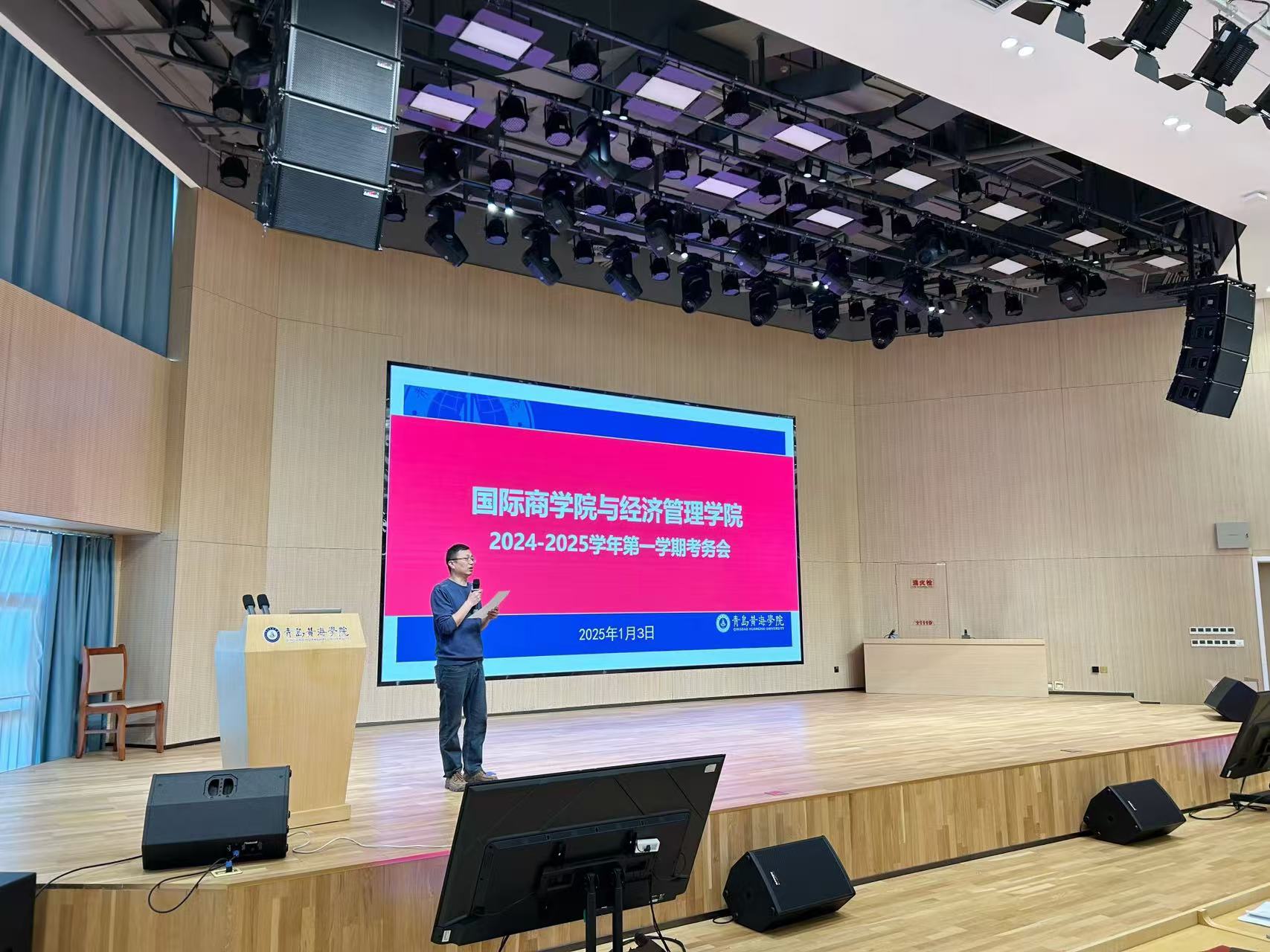 2025年1月3日,国际商学院于知信楼306报告厅成功召开了2024-2025学年第一学期期末工作安排会及第二学期工作部署会。本次会议分为两大议程,旨在确保期末工作的顺利进行,并为新学期的各项任务打下坚实基础。