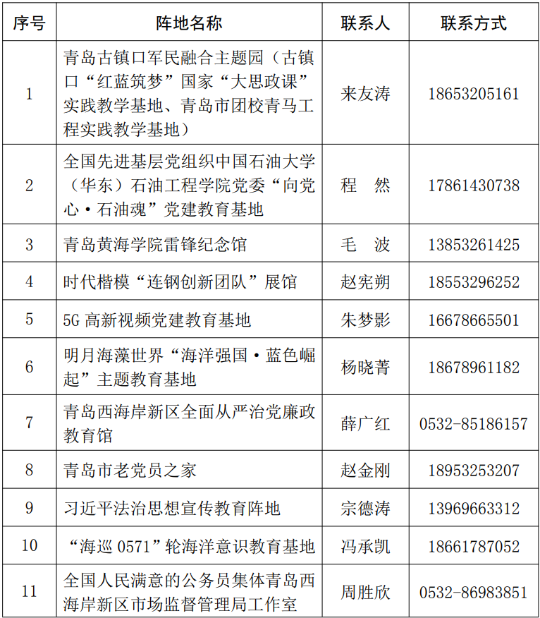 杨家山里红色教育基地→中共青岛工委旧址→古镇口国防教育基地→海军公园→海军军史展览馆