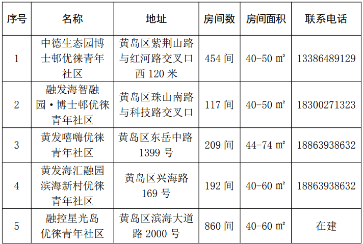 利用区内重点企业、优质民宿和酒店式公寓等资源,围绕十大功能区地域和产业分布,在全区交通生活条件便利、就业岗位集中的区域,逐步扩大“立足主城区,辐射产业链”的青年人才驿站服务阵地,建设启用15处青年人才驿站。高校毕业生可使用青年驿站微信小程序预约(联系电话:0532-85166998),一站式提供7天以内免费住宿、政策咨询、岗位推介、创业指导、城市融入等服务项目。