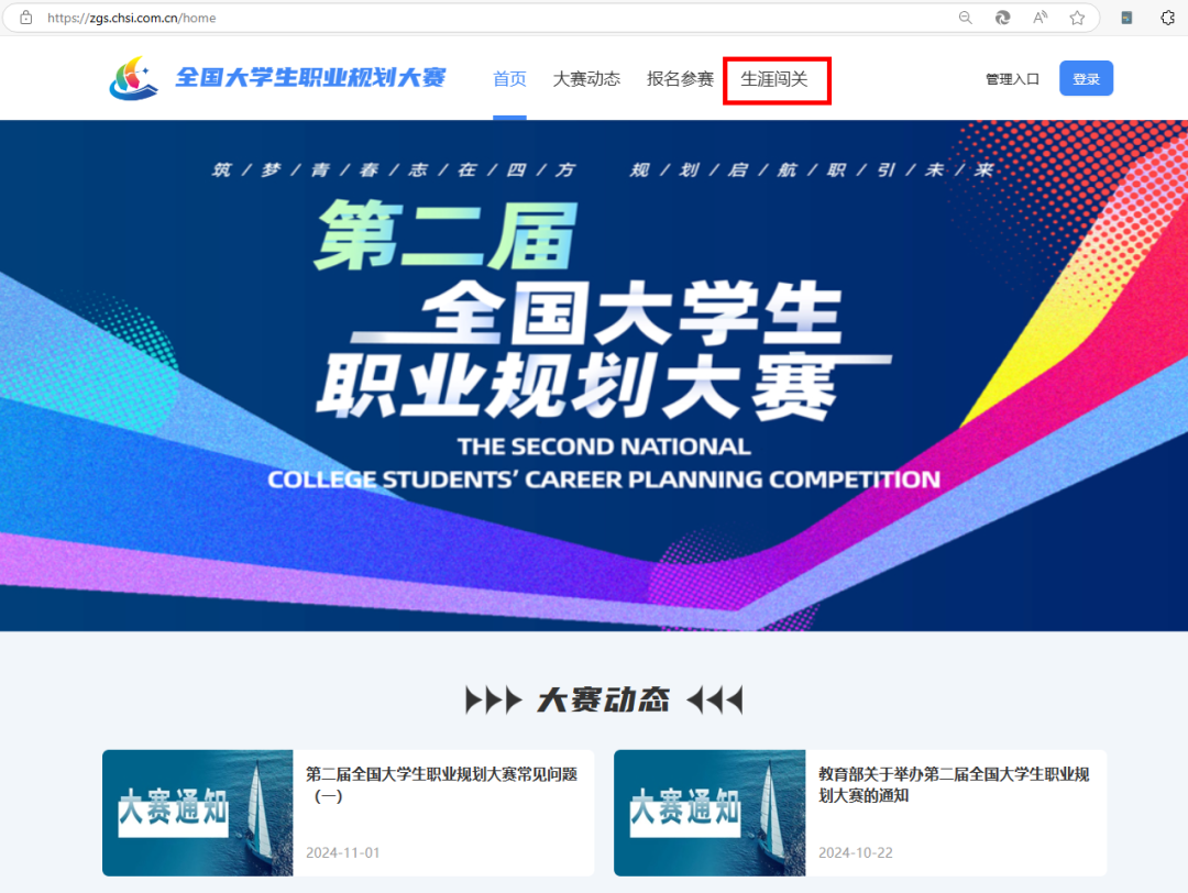 大学生可以通过访问全国大学生职业规划大赛官网(zgs.chsi.com.cn/home)→点击导航栏“生涯闯关”→ 登录→点击左侧“生涯闯关”→点击“去闯关”的步骤使用此项功能。