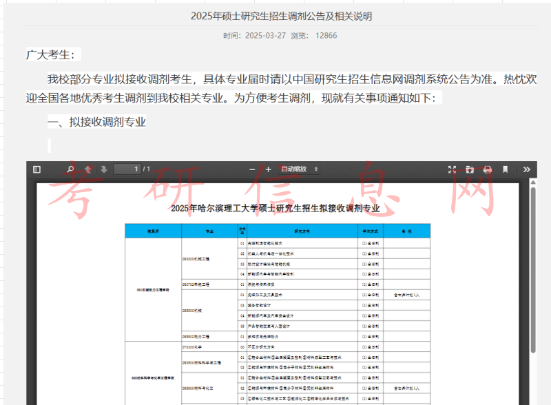 哈尔滨理工大学发布了2025年硕士研究生招生调剂公告及相关说明,也公布了拟接受调剂专业。
