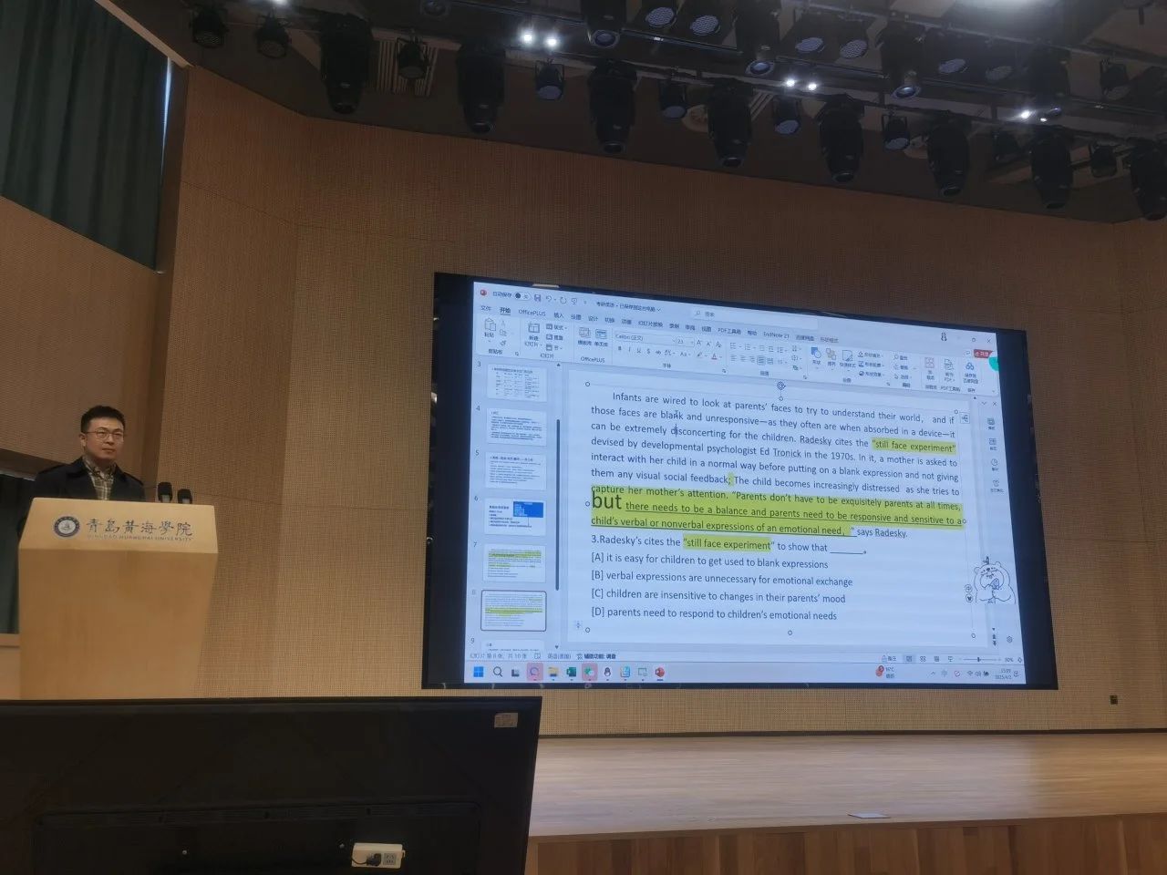 随后,陈伟老师为同学们带来了一场精彩的考研英语备考讲座。陈老师结合会计专业特点,从“词汇记忆技巧”“阅读理解策略”“写作提分要点”三个方面进行了深入讲解。针对会计专业学生普遍存在的英语学习痛点,陈老师特别建议:“要建立专业英语词汇库,将日常会计专业学习与英语复习相结合,重点关注经济类、管理类英语文章。”陈老师还现场演示了考研英语阅读理解的解题技巧,并通过真题案例展示了高效备考方法。