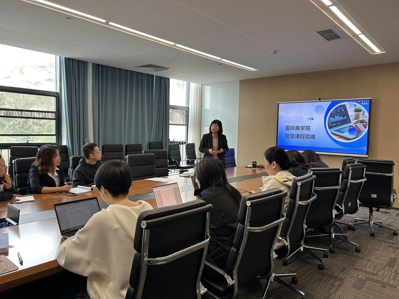 2025年4月17日,国际商学院在知信楼406会议室召开了2024年人工智能赋能教学改革试点课程建设第二阶段验收会议。本次会议旨在全面总结与评估试点课程的建设成果,推动教学改革向纵深发展。国际商学院院长助理王佳璇,5位具有丰富在线课程建设经验的教师评审团队,以及6位课程负责人共同参与了此次会议。