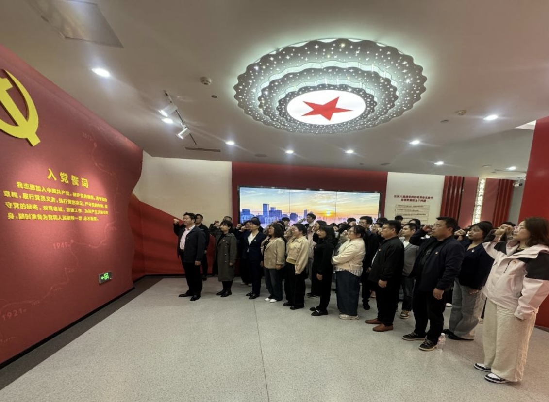 参观结束,全体党员同志在党总支书记孙兆忠带领下,面对党旗,郑重肃立,高举右拳,重温入党誓词,铮铮誓言诉说着对党的忠诚。