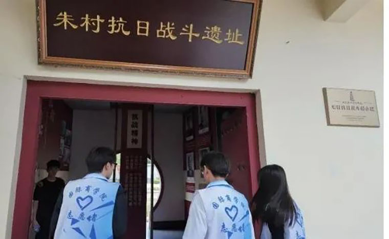 肃穆的烈士陵园松柏长青,实践团在刻满英烈姓名的纪念碑前驻足,展板上一行烫金文字灼灼生辉:“革命胜利靠的是人民群众支持。”实践团在朱村抗日战斗纪念碑前全体肃立,默哀鞠躬,以表达对先烈们的深切哀悼和崇高敬意。