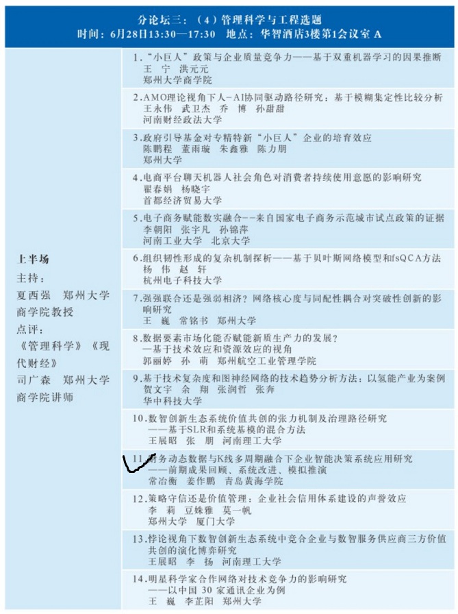 6月28日 - 6月29日,“经管期刊创新发展论坛”在郑州盛大启幕。本届论坛紧扣时代脉搏,以“人工智能驱动下的科技创新和产业创新”为主题,聚焦人工智能浪潮下科技与产业变革中的关键理论与现实问题,吸引了国内外众多专家学者齐聚一堂,共同探讨智能时代创新范式转型的核心命题,为经管领域的学术交流搭建了高端平台。